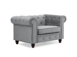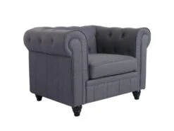 Petit Fauteuil Crapaud Rembourrée Avec Pieds Noirs Pour Salle à Manger, Salon, Entrée & Chambre-Gris