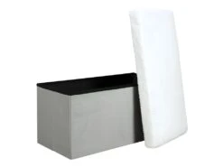 ARIE – Lot De 2 Poufs Coffres Rectangulaires Gris Imitation Fourrure