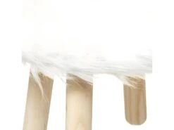 Tabouret Pour Enfant Lapin En Bois Et Fourrure Blanche H 38 Cm