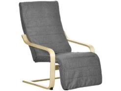 Fauteuil Style Nordique – Repose-pied RĂ©glable – DĂ©houssable – Bois De Bouleau Tissu Gris