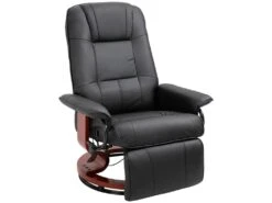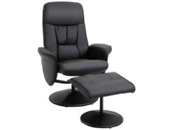Fauteuil Relax Inclinable Pivotant Style Contemporain Avec Repose-pied RevĂȘtement SynthĂ©tique Noir