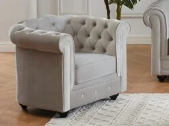 Lot De 2 Fauteuils CHESTERFIELD – Velours Gris Clair