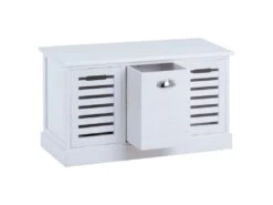 … se rendra très vite indispensable dans une entrĂ©e ou dans une chambre. Vous pourrez aussi bien l’utiliser comme meuble bas de rangement avec ses 3 caisses, idĂ©ales pour y stocker divers objets de tous les jours, des accessoires ou mĂŞme vos chaussures. Ce banc sera parfait comme siège d’appoint solide avec sa structure en MDF. Enfin, son look vintage et le coloris blanc, apportera une touche naturelle et chaleureuse dans votre intĂ©rieur, ambiance maison de campagne garantie !
