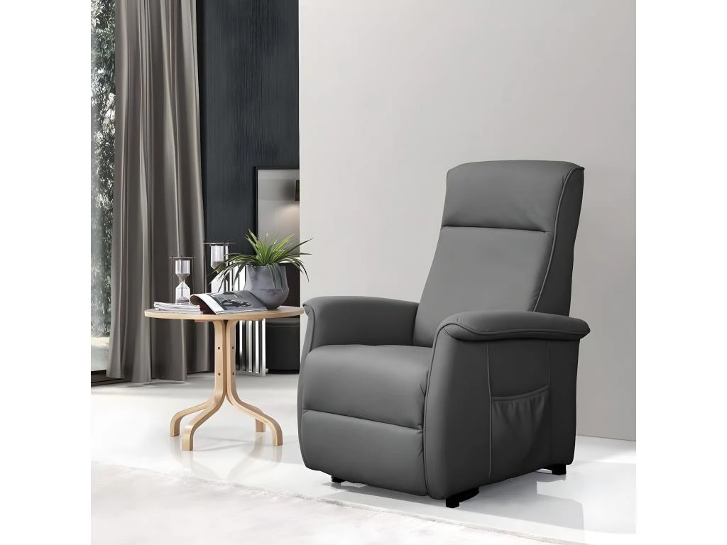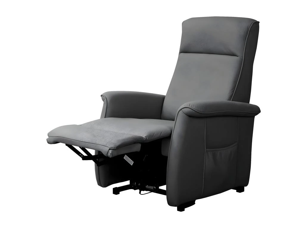 Fauteuil Relax et Releveur Electrique Tissu Aspect Cuir Gris Foncé de la gamme Barrence.