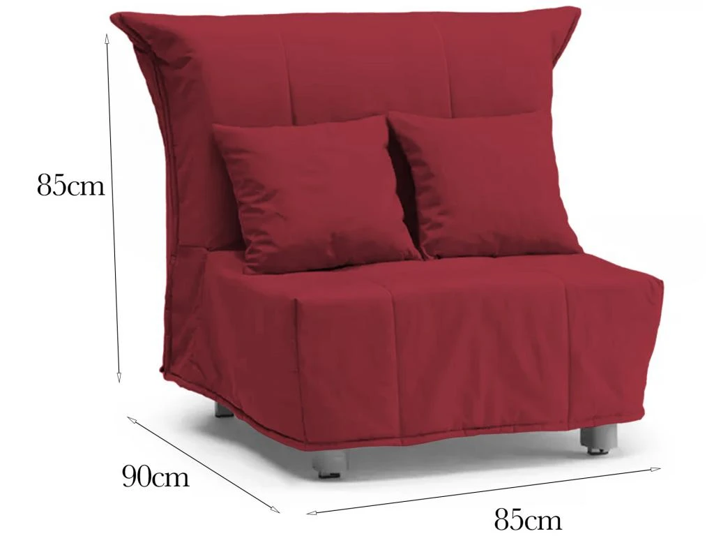 DIMENSIONS DU PRODUIT – Dimensions du canapé: Longueur 85 cm x Largeur 90 cm x Hauteur 85 cm – Dimensions du lit: Largeur 85 cm x Longueur 190 cm x Hauteur 40 cm environ – Hauteur d’assise 40 cm – Charge maximale: 200 kg