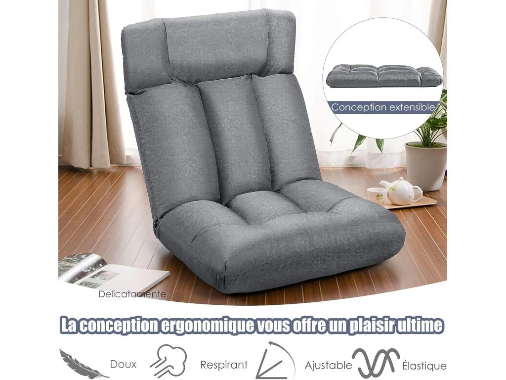 - 【La conception ergonomique offre un excellent soutien :】notre fauteuil de sol inclinable peut supporter un poids allant jusqu’à 150kg. La conception générale du fauteuil est conforme aux lignes du corps humain, ce qui apporte un bon soutien à votre dos et soulage la fatigue de celui-ci.