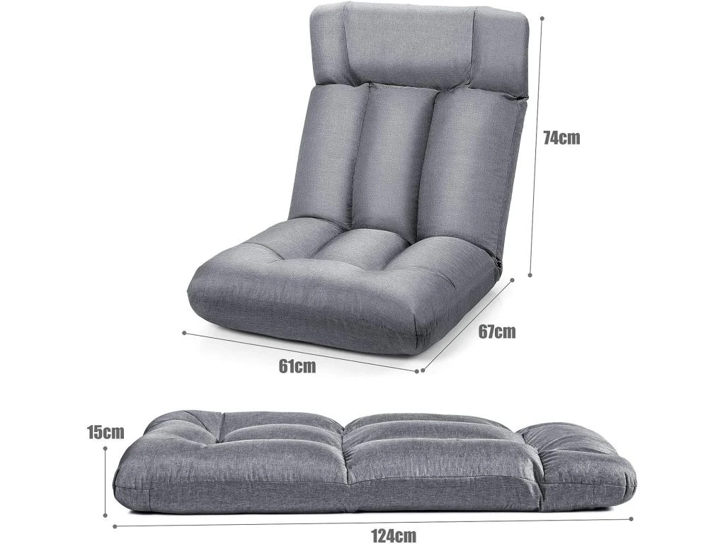 Notre canapé-fauteuil de haute qualité et tendanceest idéal pour une utilisation au sol. Le dossier peut être incliné pour gagner de l’espace et faciliter le rangement, et il peut être réglé sur 5 angles différents afin que vous puissiez trouver la position la plus confortable selon vos besoins. Il peut également vous aider à soulager la fatigue du dos grâce à sa conception ergonomique. La structure en acier et le rembourrage épais vous apportent un bon confort et garantissent aussi d’une longue durée d’utilisation. Le fauteuil est pratique à transporter et à ranger grâce à sa légèreté et à sa conception inclinable. Vous pouvez vous y asseoir pour lire des livres, vous reposer et jouer. Lorsque vos amis viennent chez vous, il peut également servir de siège supplémentaire.