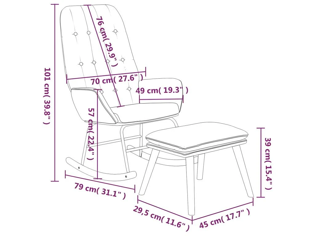 - Fonction de bascule : détendez-vous en vous asseyant confortablement tout en profitant d’un mouvement de bascule doux et apaisant. C’est un complément parfait à votre chambre à coucher et à votre salon, créant une impression durable !
