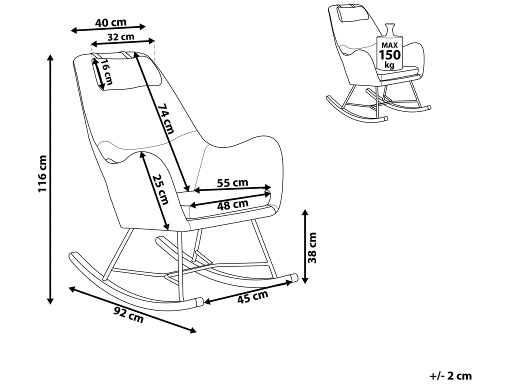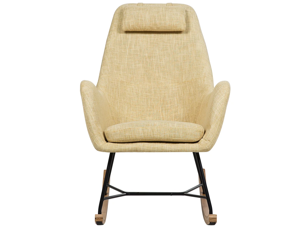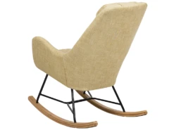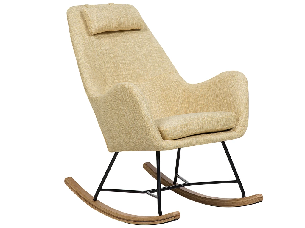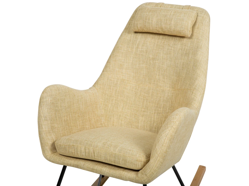 Chaise Ă bascule jaune. Cette chaise Ă bascule est une rĂ©interprĂ©tation moderne du Rocking chair classique. La courbe du dossier et les accoudoirs de la chaise sont parfaitement incurvĂ©s comme dans un vĂ©ritable fauteuil et le bercement assure un confort d’assise ultime. RevĂŞtue d’un tissu durable de couleur jaune très chic, elle apportera une touche rĂ©tro dans vos dĂ©cors. La chaise est adaptable Ă tout lieu, appropriĂ©e tant pour un coin lecture qu’Ă une salle Ă manger ou le salon. Partout oĂą elle se trouve elle garanti une expĂ©rience de relaxation unique et fait la joie de toute la famille. DĂ©tails: Type de produit: Fauteuil Ă bascule Style: RĂ©tro Couleur principale: Jaune Type de matière: Tissu Matière principale: Polyester Matière secondaire: MĂ©tal Matière du piĂ©tement: MĂ©tal Matière de l`assise: Tissu Composition de la matière: 100% Polyester Style des accoudoirs: EncastrĂ© Accoudoirs: Oui Patins pour pieds: Non Motif: Unicolore Inclinable: Non Construction du siège: ContreplaquĂ© Dimensions: Dimensions des accoudoirs: 25 cm Profondeur: 92 cm Épaisseur du siège: 7 cm Hauteur du siège: 49 cm Largeur: 48 cm Hauteur: 116 cm Surface d`assise: 55×48 cm Poids: 14 kg Charge admise: 150 kg L`offre inclue: 1 x Fauteuil CaractĂ©ristiques clĂ©s: Fonction bascule agrĂ©able, Avec appui-tĂŞte confortable, Assise large et bien rembourrĂ©e pour le meilleur confort, Se marie bien avec tous les styles, Combinaison idĂ©ale des couleurs et matières, Rembourrage de qualitĂ© supĂ©rieure Informations d`assemblage: PrĂ©assemblĂ©. 20 – 40 min Conseils de maintenance: Polyester: 1.Nettoyez avec un chiffon et un dĂ©tergent doux, essuyez bien ensuite. MĂ©tal: 1.Pour les Ă©lĂ©ments en cuivre ou chromĂ©s, utilisez un produit de polissage spĂ©cial 2.Pour Ă©viter les rayures, n’utilisez pas de nettoyants abrasifs 3. Nettoyez avec un chiffon et un dĂ©tergent doux, essuyez bien ensuite.