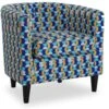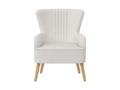 OrnĂ© dâun touffetage vertical au centre du dossier et des pieds en bois naturel teintĂ©..