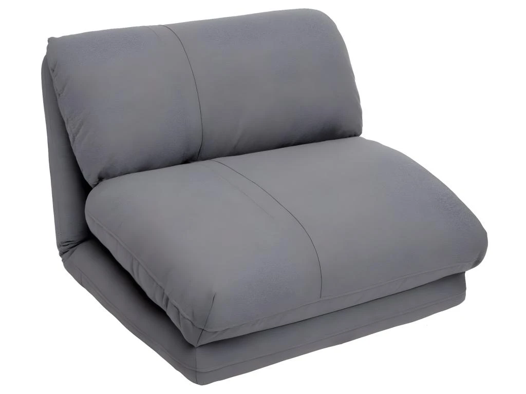 Enveloppe en tissu et coussin garni de coton. Assise d’une hauteur de 26 cm. Se déplie pour former un lit 209 x 78 x 58 cm, convenant pour un adulte ou un enfant.