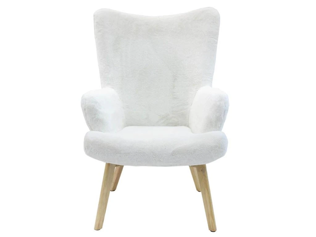 Fauteuil Blanc Imitation Fourrure Pieds Bois Cocoon.