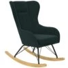 Fauteuil à bascule Rocking-chair en tissu Bleu canard – Dimensions : L. 64 x P. 78 x H. 87,5 cm -Hauteur d’assise : 49 cm –