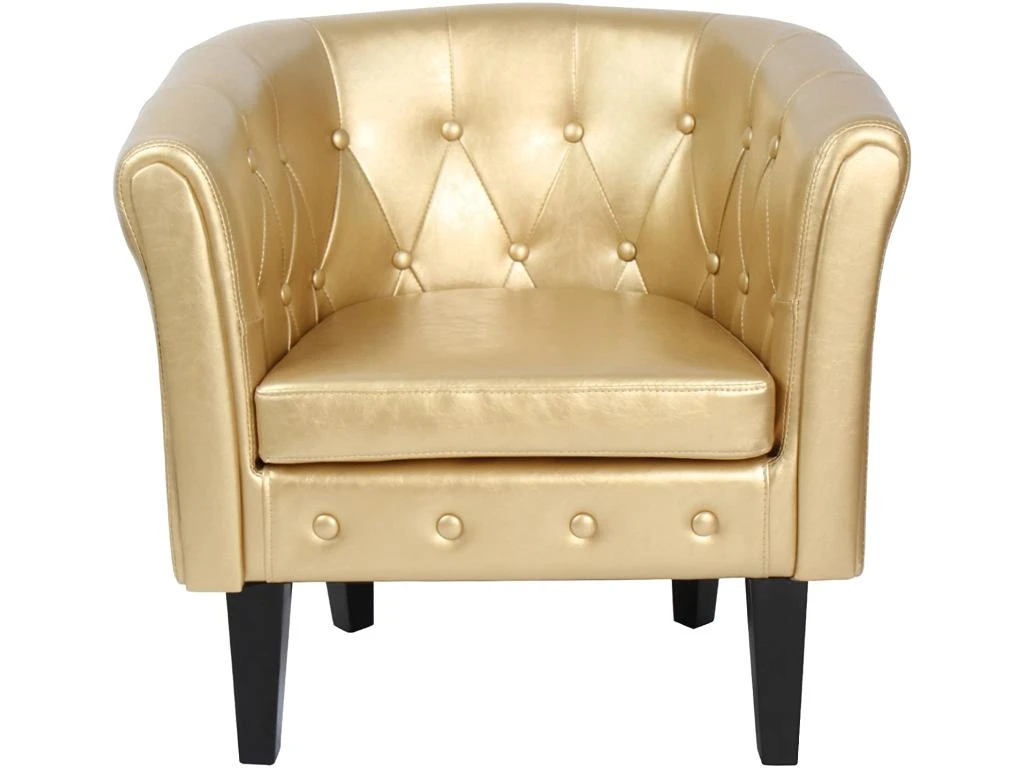 1 x Fauteuil Chesterfield avec repose-pied en doré (en kit à monter soi-même)