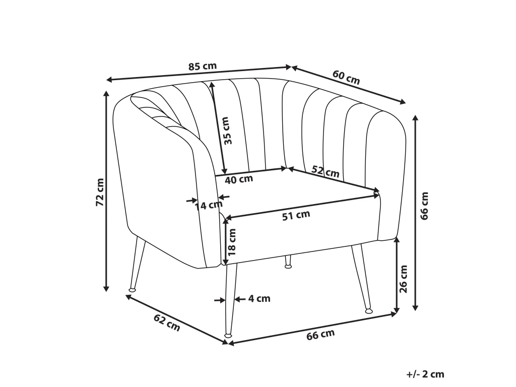 Fauteuil club rembourré cabriolet. Misez sur le luxe et une ambiance noble qui laisse une forte impression sur vos invités au premier coup d’œil avec ce fauteuil club typé cabriolet. La housse en velours fin taupe séduit par son charme traditionnel et historique, son style glamour et sa structure agréable. L’interaction de la forme moderne avec les pieds légers et élégants en métal doré apporte un look rétro-chic contemporain dans la pièce. Faites de fauteuil en velours rembourré tout confort votre endroit favori où vous pouvez lire, parler ou vous détendre confortablement. Détails: Type de produit: Fauteuil Style: Glamour Couleur principale: Gris Nuance: Gris clair Type de matière: Tissu Matière principale: Velours Matière secondaire: Métal Matière du rembourrage: Rembourrage en mousse Matière du piétement: Métal Composition de la matière: 100% Polyester Style des accoudoirs: Encastré Accoudoirs: Oui Patins pour pieds: Oui Motif: Unicolore Inclinable: Non Construction du siège: Contreplaqué Densité de la mousse du siège: 24 kg/m3 Dimensions: Dimensions des accoudoirs: 66 cm Profondeur: 62 cm Épaisseur du siège: 18 cm Hauteur du siège: 44 cm Largeur: 85 cm Hauteur: 72 cm Surface d`assise: 52×51 cm Poids: 18 kg Charge admise: 200 kg L`offre inclue: 1 x Fauteuil Caractéristiques clés: Assise rembourrée épaisse, Accoudoirs parfaitement assortis, Incroyablement doux, Capitonnage vertical décoratif, Patins pour le pieds assurent la protection contre les rayures Informations d`assemblage: Pieds à monter. 5 – 15 min Informations supplémentaires: Pour garantir la stabilité de la construction et la sécurité d’utilisation, il est recommandé de vérifier si le produit a été correctement assemblé 2 semaines après son installation. Il est également recommandé de vérifier que les vis sont correctement serrées tous les 3 mois., Le tissu polyester gainé de PVC est durable, hydrofuge et résistant aux taches. Cependant, il est conseillé d’assembler les meubles à une température ambiante, car ce type de textile est alors plus flexible et donc facile à monter. Une température basse peut entraîner le rétrécissement de la maille et la rendre plus difficile pour l’ajustement avec le cadre. Conseils de maintenance: Velours: 1. Aspirez en utilisant l’embout approprié 2. Nettoyez avec un shampooing sec ou une éponge humide et un nettoyant doux. Métal: 1.Pour éviter les rayures, n’utilisez pas de nettoyants abrasifs 2. Nettoyez avec un chiffon et un détergent doux, essuyez bien ensuite 3.Pour les éléments en cuivre ou chromés, utilisez un produit de polissage spécial.