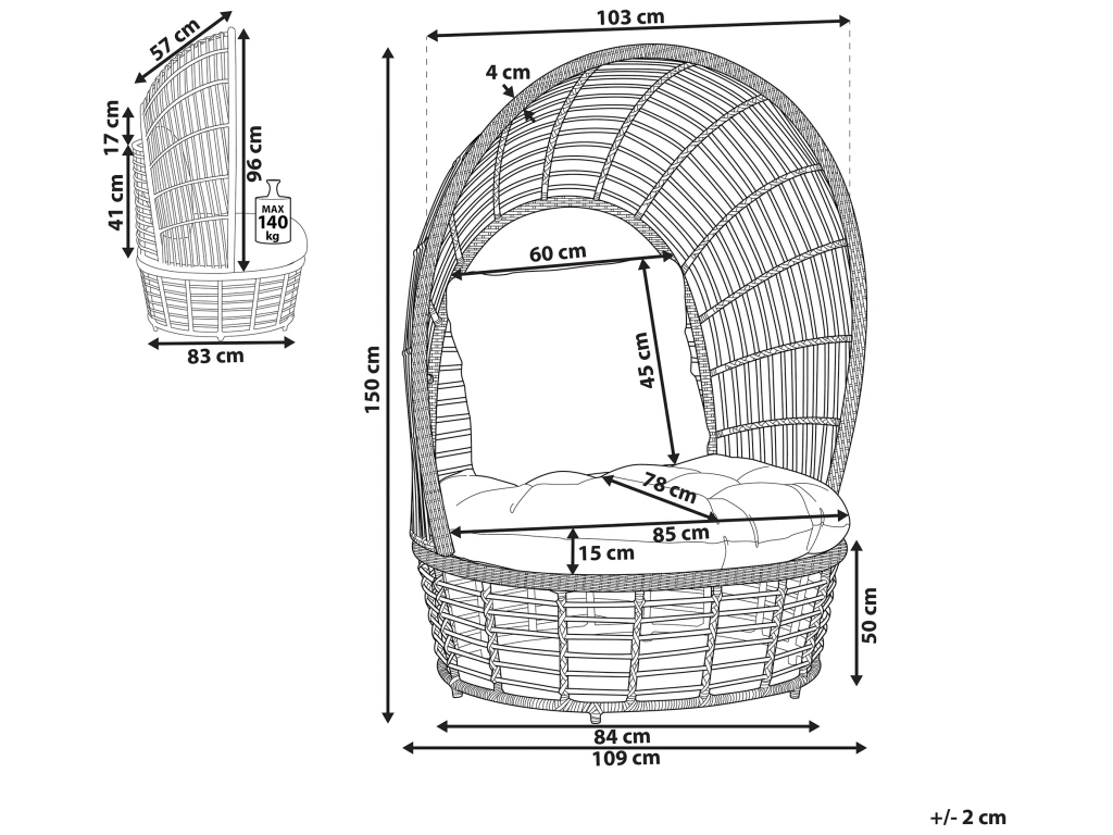 L`offre inclue: 1 x Fauteuil, 1 x Coussin d’assise, 1 x Coussin de dossier