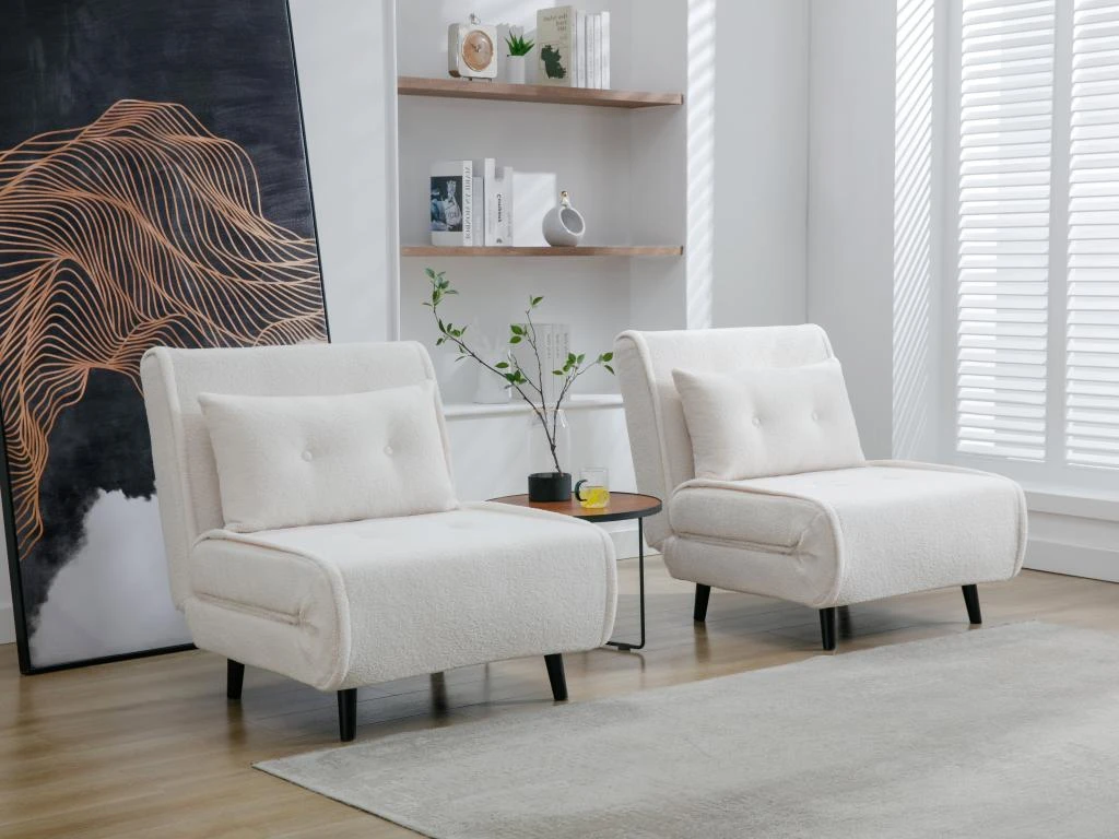 Vous souhaitez meubler votre foyer avec ingéniosité ? Alors, n’hésitez pas et sautez le pas ! Optez pour les canapés 2 places et fauteuils convertibles en tissu bouclette ivoire URIBIA et vous passerez vos nuitées à rêver. Assortis d’un coussin additionnel à effet capitonné, ils apporteront davantage de confort et de sérénité !