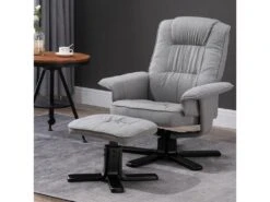 – Le revêtement du fauteuil et du repose-pieds est en tissu de coloris gris.