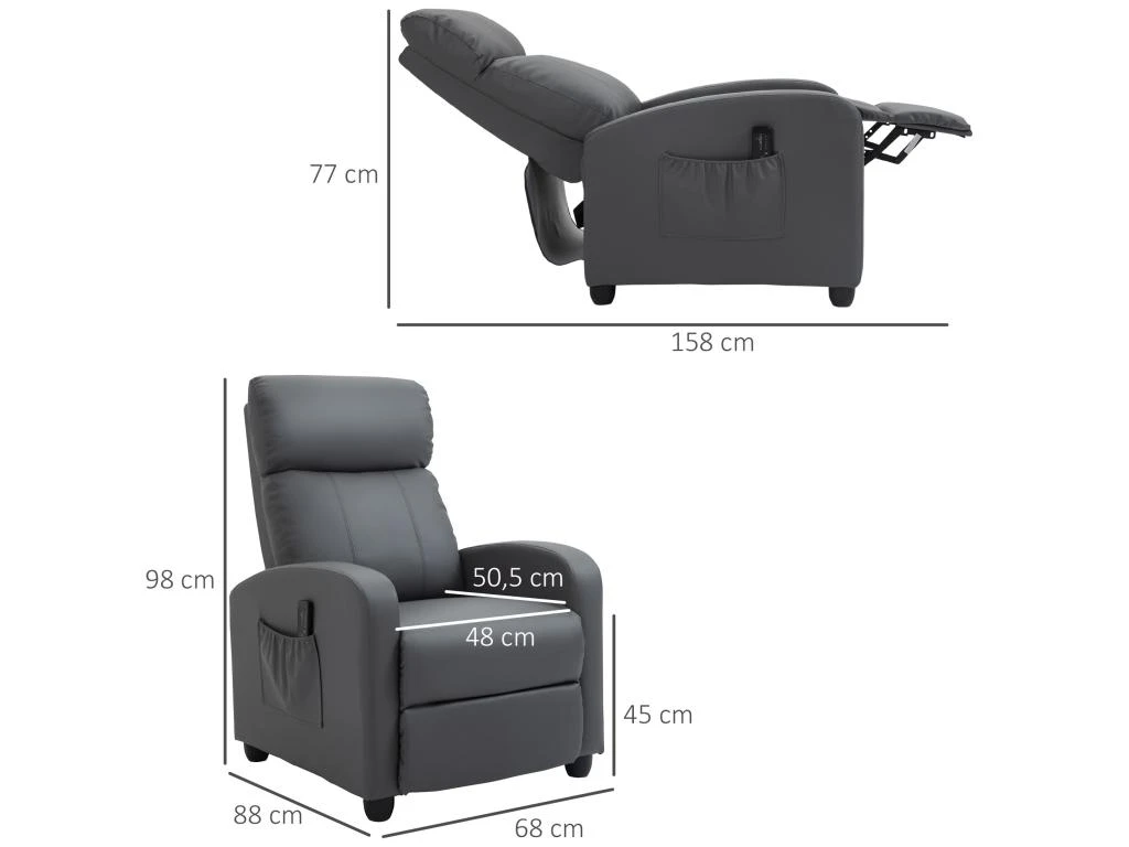 – Inclinaison du dossier réglable (jusqu’à 150°) et position du repose pied ajustable manuellement