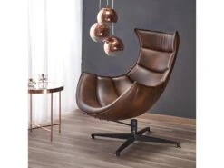 Fauteuil Vous aimez voir des meubles de valeur dans votre maison ? Ce fauteuil pourrait vous plaire. Lisez notre descriptif pour vous renseigner sur les dĂ©tails de ce fauteuil. Un fauteuil original Ce fauteuil en cuir reconstituĂ© posĂ© sur des pieds en acier inoxydable se dĂ©cline sous une belle forme incurvĂ©e dotĂ©e de lignes parfaitement exĂ©cutĂ©es sur le devant. Il est un meuble de choix pour instaurer la sensation de luxe dans votre intĂ©rieur. Sa couleur marron peut se marier Ă de nombreux tons clairs comme le gris, le bleu ou l’orange. Un fauteuil confortable Ce beau fauteuil rembourrĂ© vous mettra Ă l’aise Ă chaque utilisation. Allant de quelques heures Ă une journĂ©e, vous pourrez profiter de bons moments de dĂ©tente avec ce fauteuil. PossĂ©dant une charge maximale de 120 kg, vous pourrez en profiter un long moment. Un fauteuil polyvalent Ce fauteuil constitue un meuble de choix que ce soit pour votre salon, votre lieu de travail ou votre chambre. FabriquĂ© Ă partir de matĂ©riaux robustes et solides, il pourra sans difficultĂ© traverser des annĂ©es d’utilisation.