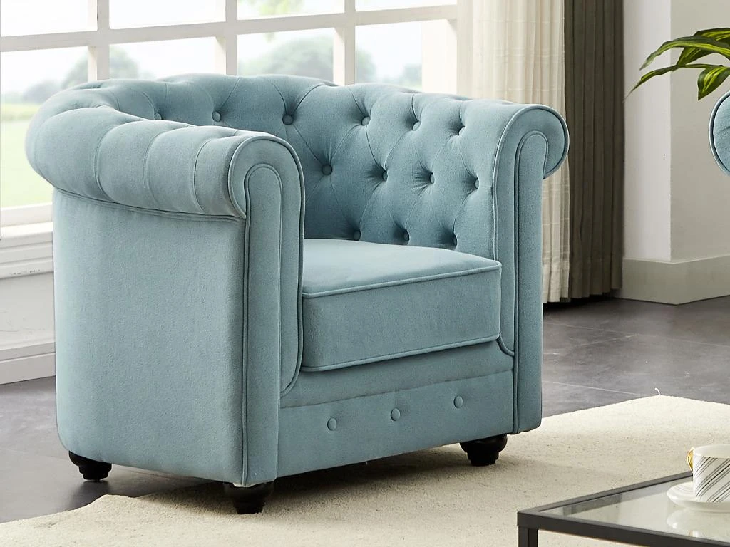 Vous souhaitez ajouter une touche élégante à votre intérieur ? Découvrez les canapés et fauteuils CHESTERFIELD. Doté d’un dossier richement capitonné, cet ensemble vous procure non seulement un soutien ergonomique, mais ajoute également une texture raffinée à l’ensemble. Le design intemporel du Chesterfield se marie harmonieusement avec différents styles de décoration, que ce soit dans un intérieur traditionnel ou moderne.