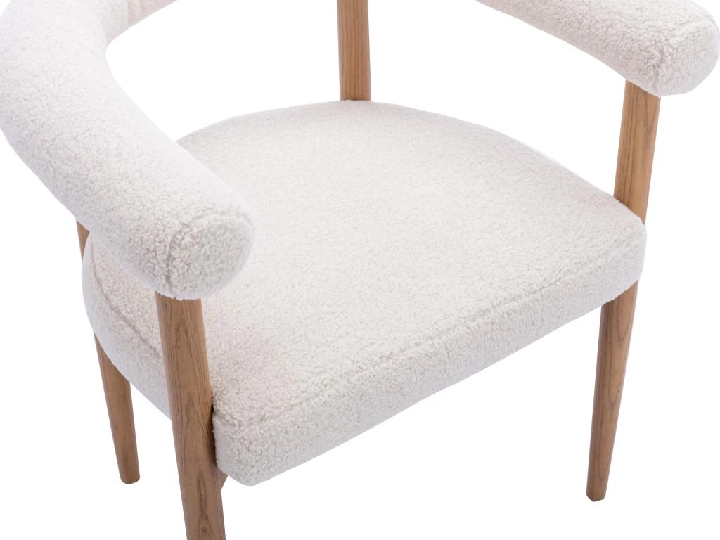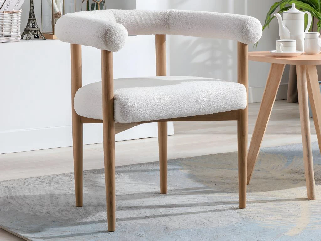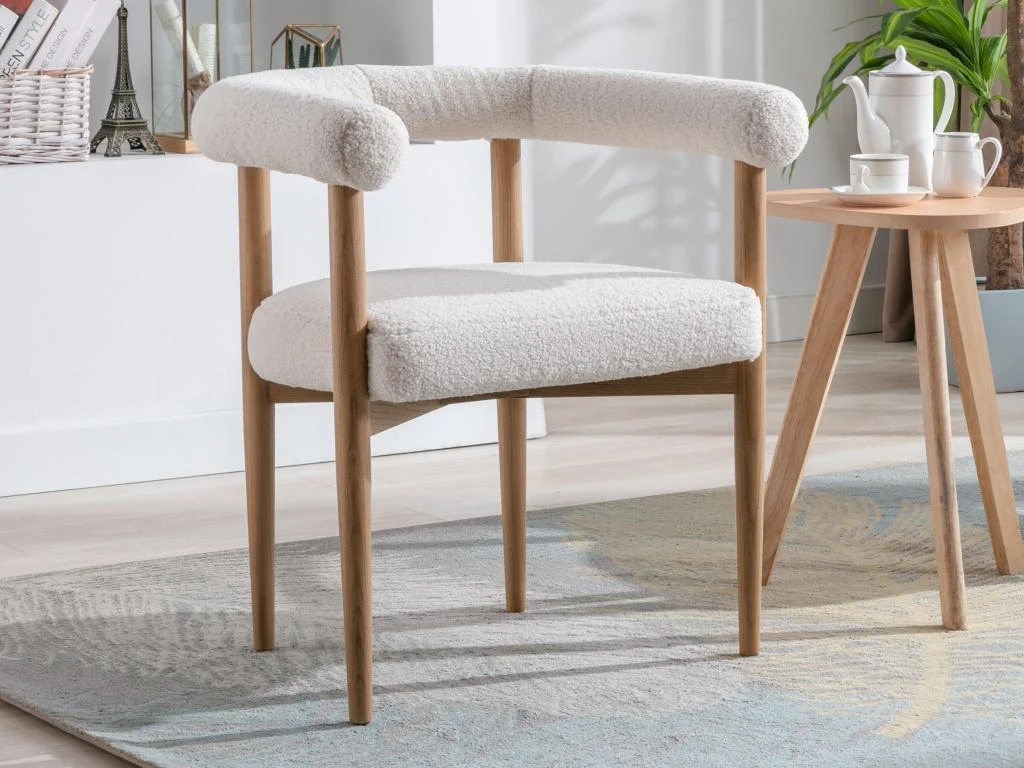 – Tissu bouclette : Profitez du revêtement en tissu bouclette doux au toucher et offrant un confort optimal. Avec son apparence élégante et sa couleur sobre, le fauteuil JASMINA est fait pour vous si vous recherchez un fauteuil moelleux qui s’adapte à tous les styles de décoration et qui apporte une touche de chaleur.