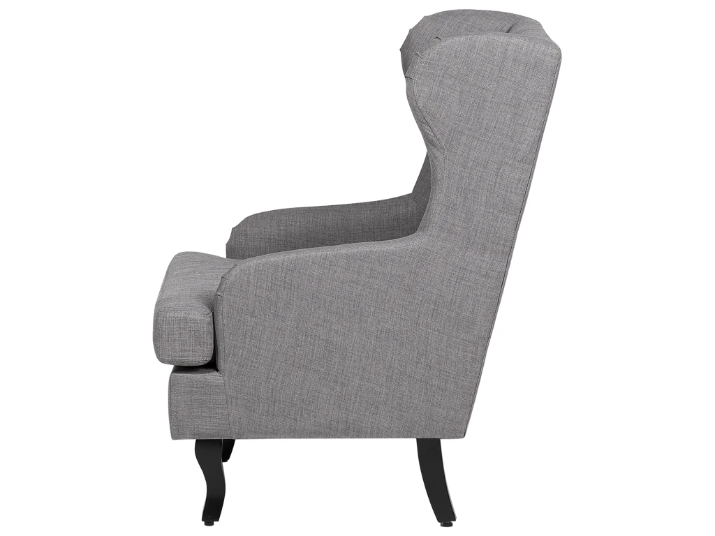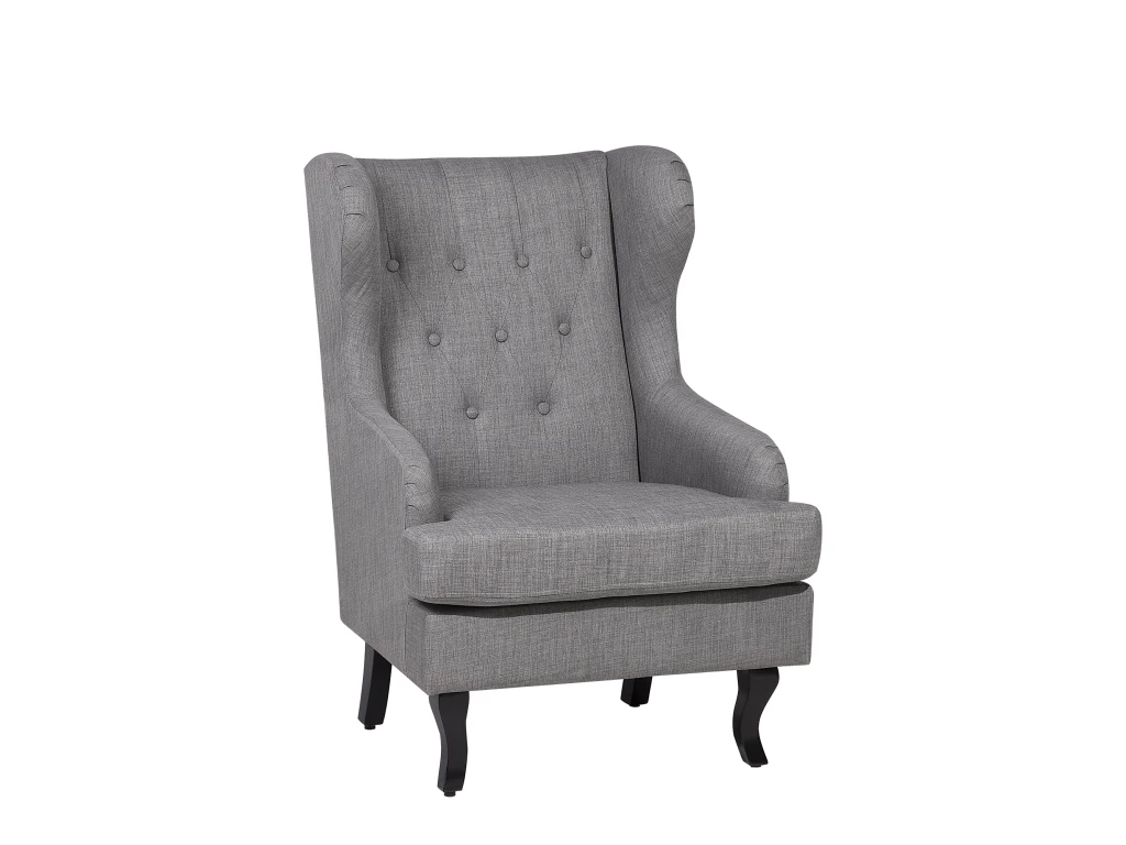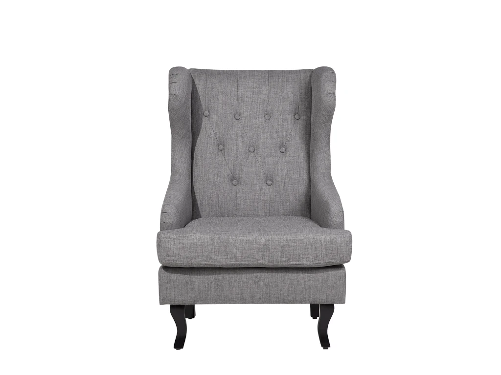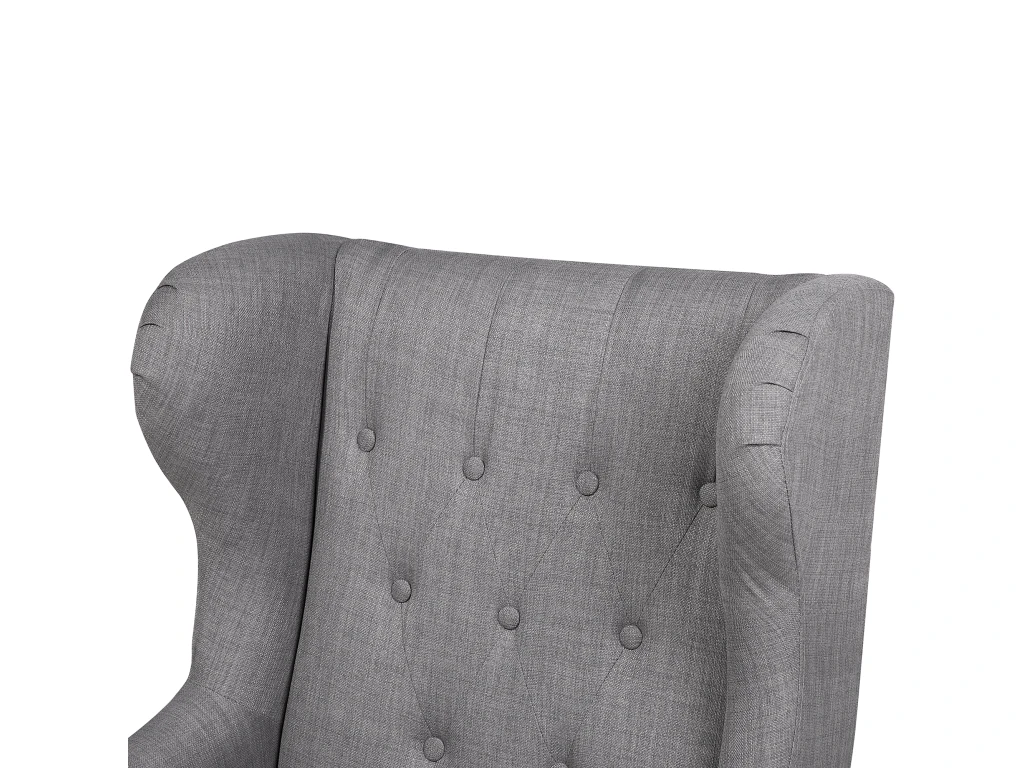 Fauteuil en tissu gris capitonné. Ce fauteuil en tissu de haute qualité vous offrira une expérience unique de relaxation. Extrêmement confortable grâce à son assise moelleuse, ses accoudoirs rembourrés et son dossier capitonné de 9 boutons, ce fauteuil est idéal pour les moments de détente à la maison. Le siège mesurant 112 x 77 x 71 cm se compose d’un revêtement en tissu très résistant, agréable au toucher et facile à entretenir. Les pieds sont en bois d’hévéa pour assurer une bonne stabilité. Le design rétro et la couleur sobre font l’élégance de ce fauteuil qui s’intégrera aussi bien dans un intérieur contemporain que dans un intérieur à la décoration plus classique. Détails: Type de produit: Fauteuil Style: Rétro Couleur principale: Gris Type de matière: Tissu Matière principale: Polyester Matière secondaire: Bois d’hévéa Matière du rembourrage: Rembourrage en mousse Matière du piétement: Bois solide Matière de l`assise: Tissu Composition de la matière: 100% Polyester Style des accoudoirs: Encastré Accoudoirs: Oui Patins pour pieds: Oui Motif: Unicolore Inclinable: Non Construction du siège: Bande élastique Densité de la mousse du siège: 30 kg/m3 Dimensions: Dimensions des accoudoirs: 66 cm Profondeur: 78 cm Épaisseur du siège: 12 cm Hauteur du siège: 46 cm Largeur: 72 cm Hauteur: 100 cm Surface d`assise: 72×54 cm Poids: 19 kg Charge admise: 150 kg L`offre inclue: 1 x Fauteuil Caractéristiques clés: Assise large et bien rembourrée pour le meilleur confort, Garantie du meilleur confort d’assise, Donne une atmosphère chaleureuse, Style rétro, Matières de haute qualité, Entièrement rembourré sur tous les côtés Informations d`assemblage: Pieds à monter. 5 – 15 min Conseils de maintenance: Polyester: 1. Nettoyez avec un shampooing sec ou une éponge humide et un nettoyant doux 2. Aspirez en utilisant l’embout approprié. Bois d’hévéa: 1.Nettoyez avec un chiffon et un nettoyant doux dans le sens du grain du bois 2.De temps en temps, il est conseillé de mettre une nouvelle couche d’huile sur les meubles avec une finition huilée 3.Essuyez immédiatement après le nettoyage pour empêcher l’eau de s’accumuler sur les meubles.