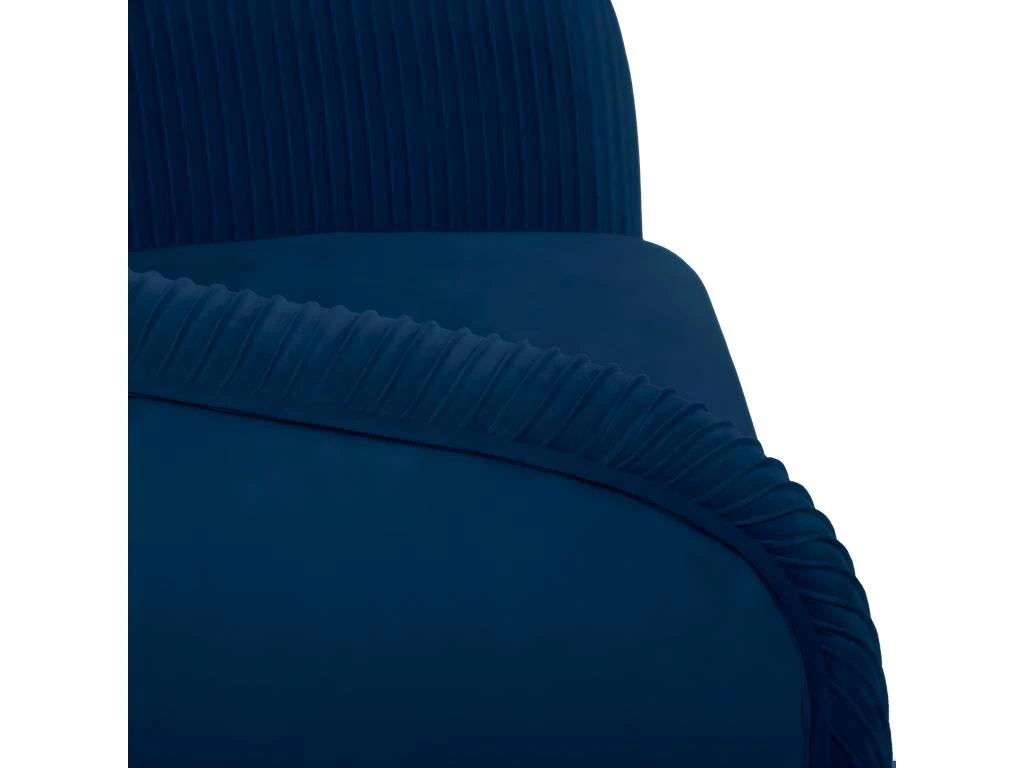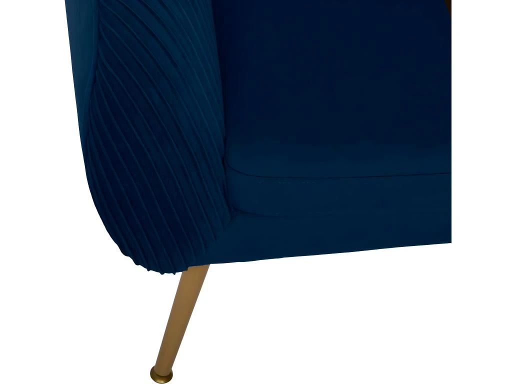 Fauteuil en Velours Bleu plissé et pieds en métal doré – Dimensions : L. 75 x P. 70 x H. 78 cm –