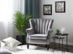 Caractéristiques clés: Un confort d’assise optimal, Pieds stables, solides et élégants, Style traditionnel avec une touche moderne, Capitonnage vertical décoratif, Tissu soyeux et velouté