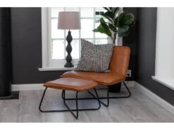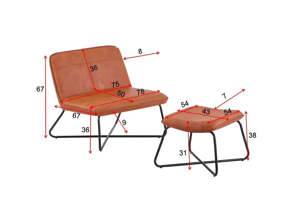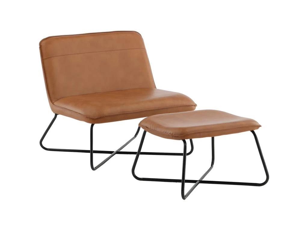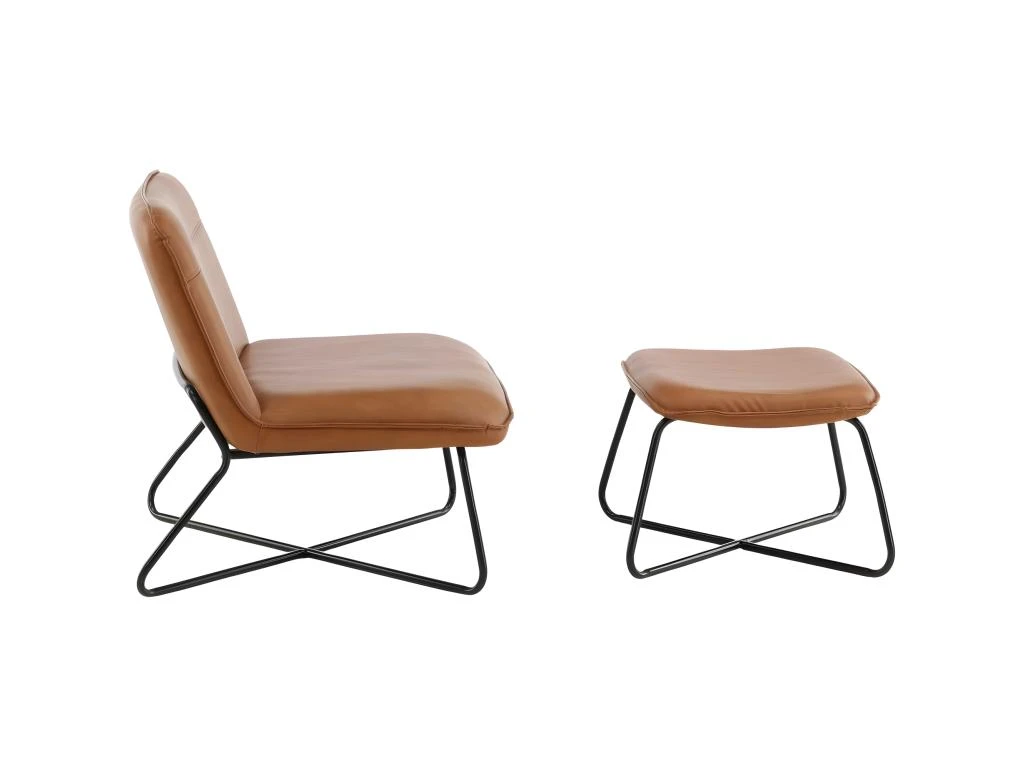 Fauteuil et repose pieds en acier et polyuréthane marron X