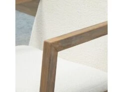 – Matériaux principaux : bois d’hévéa, garnissage mousse, tissu 100% polyester effet peau de mouton