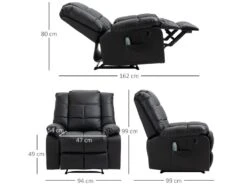 – Fauteuil de massage relaxation doté de 8 points de massage par vibration, dont 4 points pour le dos, 2 points au niveau des cuisses et 2 points au niveau des mollets
