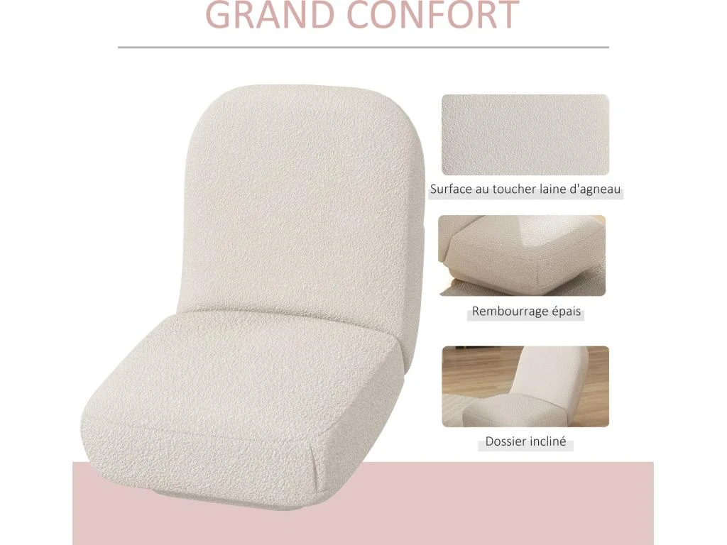 – Fauteuil paresseux coloris blanc cassé : style contemporain idéal pour sublimer l’espace intérieur de votre choix : salon, chambre, bureau, salle de jeux, etc.