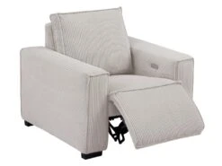 Des boutons sur le côté des accoudoirs vous permettent d’incliner le dossier, la têtière et le repose-pieds à votre convenance sans reculer le dossier, ce qui évite toute perte de place. vous pouvez donc coller le canapé à votre mur sans souci !