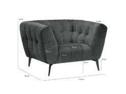 - DETAILS : Dimension de l’assise : L 52 cm x H 42 cm x P 60 cm. Hauteur accoudoirs : 43 cm.