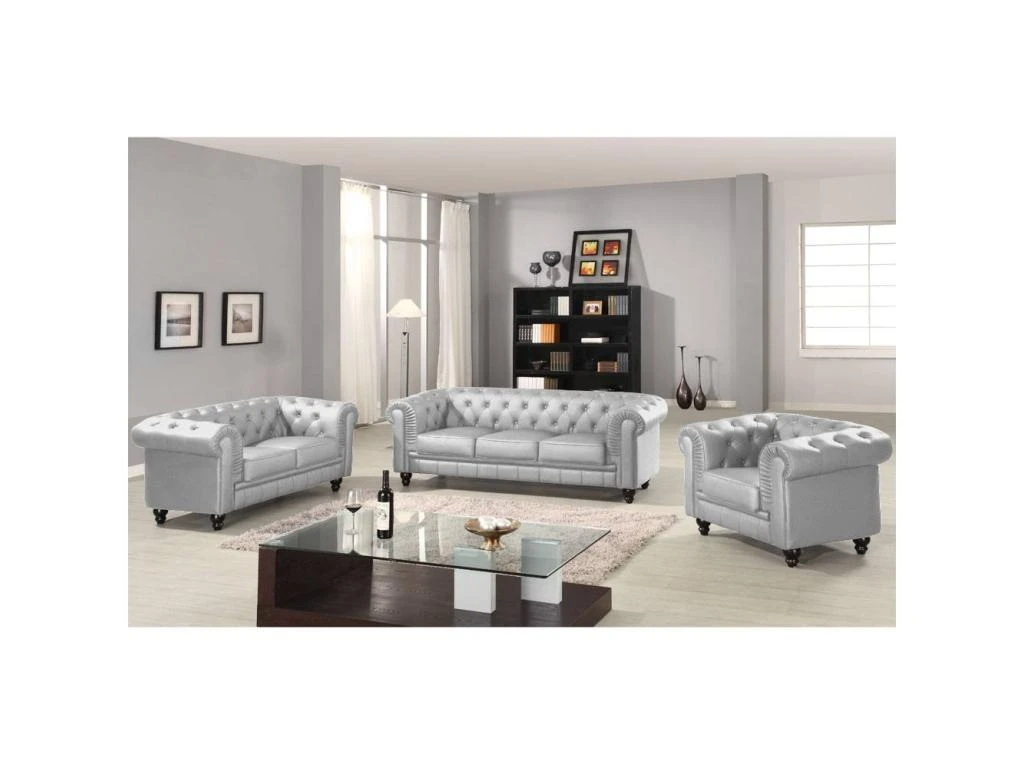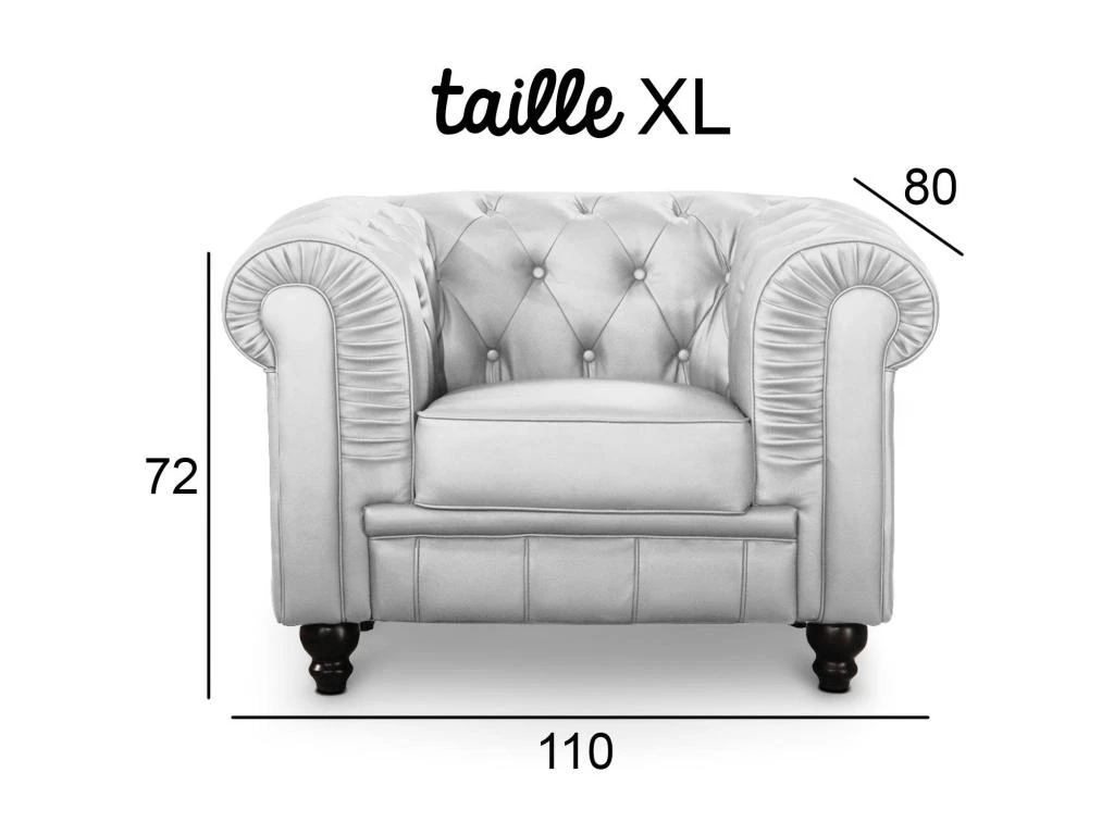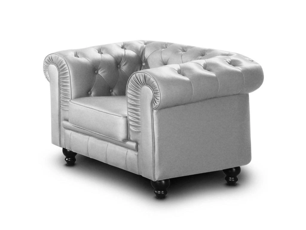 Envie d’apporter une touche chic et élégante à votre salle de séjour ? Optez pour ce superbe fauteuil Chesterfield. Classique à souhait, ce fauteuil design représente à merveille le chic à l’anglaise.Ce modèle vous offre également un confort optimal, grâce à ses larges accoudoirs et son capitonnage très bien réalisé. Les plis en éventail au niveau de l’accoudoir lui procurent ce côté so british qui ne laisse personne indifférent.Ce fauteuil d’une dimension de 113 x 82,5 x 66 cm convient à tous ceux qui recherchent un fauteuil de qualité, qui puisse s’installer même dans un intérieur restreint. Il est parfait pour créer un petit salon cosy et élégant à souhait. Vous recherchez un fauteuil solide, qui durera de longues années ? Ce fauteuil Chesterfield est fait pour vous. Sa structure, fabriquée à l’aide d’une combinaison de matériaux de haute qualité lui confère une robustesse à toute épreuve. Le revêtement en PU, une matière similaire au cuir de vachette de vachette de vachette, souligne sa solidité, tout en y apportant un côté élégant, fort agréable.Vous recherchez un meuble dans l’air du temps ? Le fauteuil Chesterfield est l’idéal. Indémodable et intemporel, il s’harmonise avec n’importe quel intérieur. Il est disponible en différentes couleurs, allant de l’argent au rouge, en passant par le gris et le beige, sans oublier le noir, le marron et la taupe. Complétez l’aménagement de votre pièce à vivre avec ce fauteuil de style britannique. Il s’associe à merveille avec d’autres meubles du même style ou de style différent. Catégories Associées :Fauteuil gris, Fauteuil bois, Fauteuil SimiliCatégories Associées :Canapé gris, Canapé simili