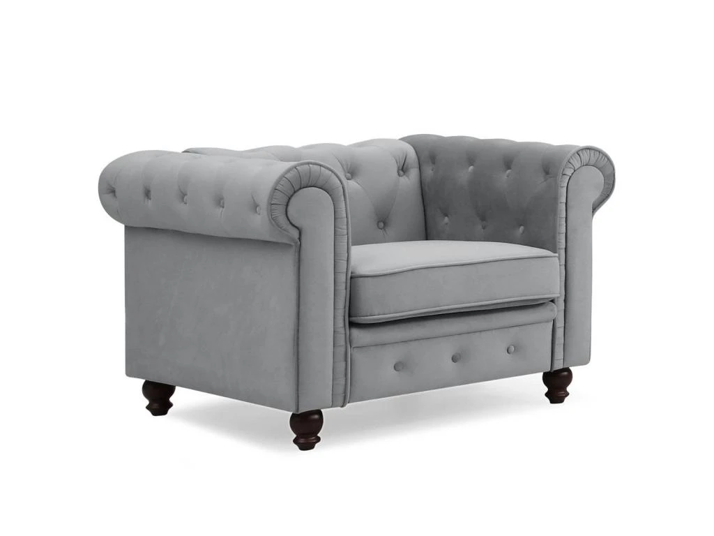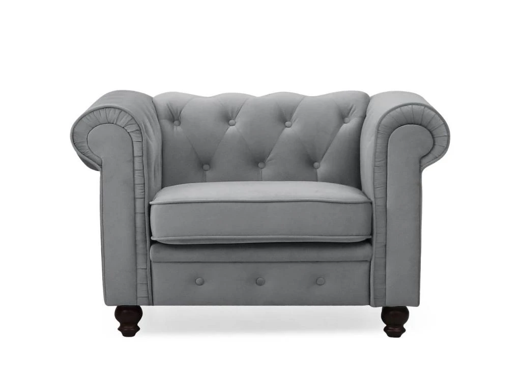 Laissez-vous séduire par le design britannique, habillez votre salon avec ce fauteuil Chesterfield velours. Ce fauteuil design reflète à merveille le chic et l’élégance à l’anglaise. Ce modèle vous offre également un confort optimal avec son capitonnage de qualité et son assise à la fois profonde et moelleuse. Son revêtement en velours lui procure une grande résistance et une douceur incroyable au toucher. Ce fauteuil dont l’assise a une dimension de 45×55 cm s’adresse à tous ceux qui recherchent un produit de qualité, tout en apportant une note décorative fort agréable à leur intérieur. C’est la pièce maitresse qui fera à coup sûr de votre séjour un lieu chic et élégant. Sa structure en bois lui assure une grande solidité et une résistance aux usures du temps. Le revêtement en velours de première qualité est en argent, mais il y a aussi d’autres coloris disponibles comme le mauve, le gris, le marron, le rouge ou encore le beige. À vous de choisir le modèle qui s’harmonisera parfaitement à votre intérieur. Ce fauteuil Chesterfield s’accorde parfaitement avec tous vos mobiliers. Il trouve sa place aussi bien dans un intérieur classique que contemporain. Son style indémodable et intemporel fait de lui la pièce idéale pour parfaire la décoration et l’aménagement de votre salle de séjour. Ce fauteuil plait aussi pour sa finition soignée. Les moindres détails ont été soignés pour plaire aux plus exigeants. Les plis en éventail parfaitement réalisés au niveau des larges accoudoirs, les piqûres au niveau de l’assise en sont le parfait exemple.Catégories Associées :Fauteuil gris, Fauteuil bois, Fauteuil velourCatégories Associées :Canapé gris, Canapés velours