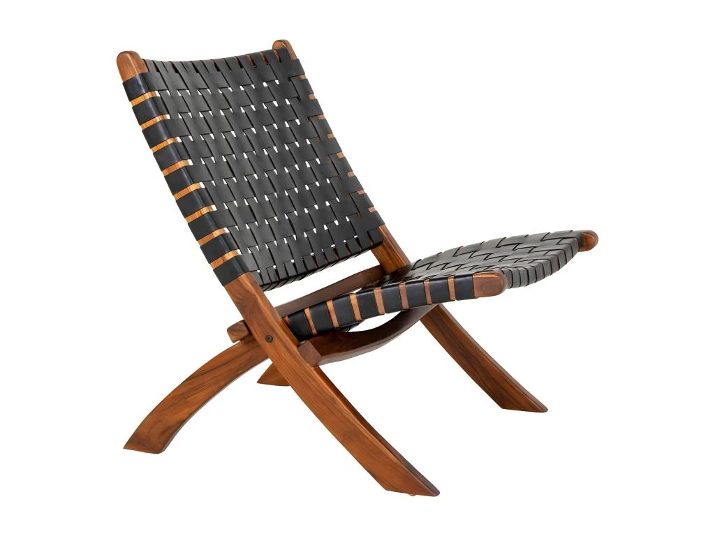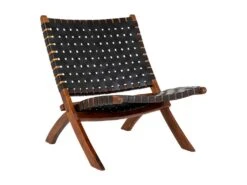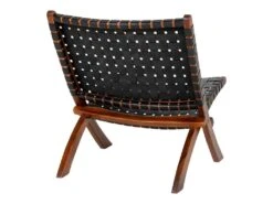 Fauteuil en Teck Massif et Lanières Cuir Noires de la gamme Rimini.