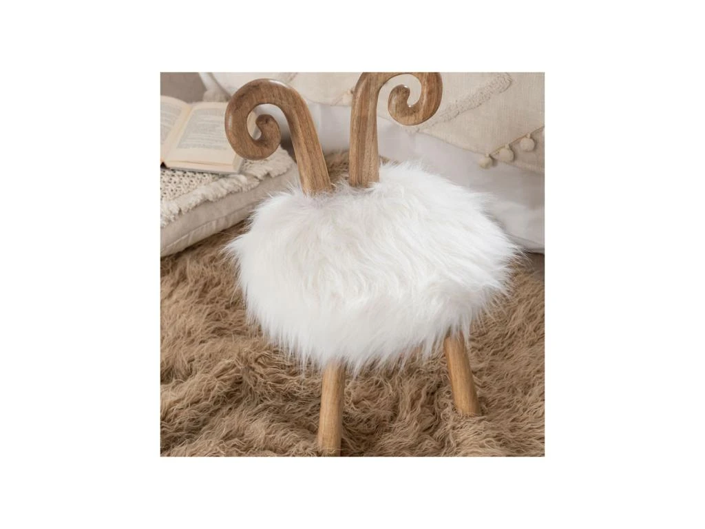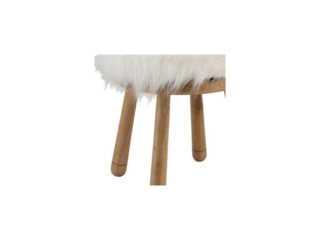 Afin de parfaire le look amusant de ce petit tabouret, l’assise propose un revĂŞtement fourrure blanche.
