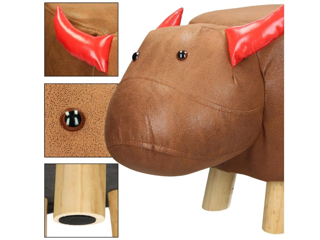 Le tabouret en forme de veau, au design adapté aux enfants, est dépourvu d’arêtes vives. Il impressionne par son siège bien rembourré avec un revêtement en tissu facile à entretenir et par sa fabrication solide. Grâce aux patins en feutre, le sol reste protégé des rayures même en cas de jeu intensif.