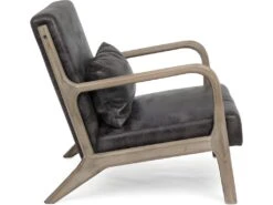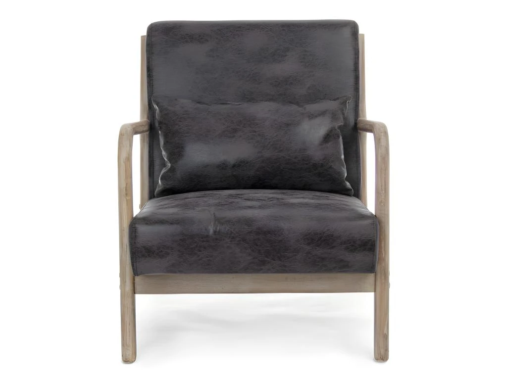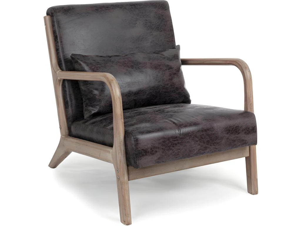 Le fauteuil Vincent est tapissé d’une matière aspect « vieux cuir » marron blanchie lui donnant son look vintage.