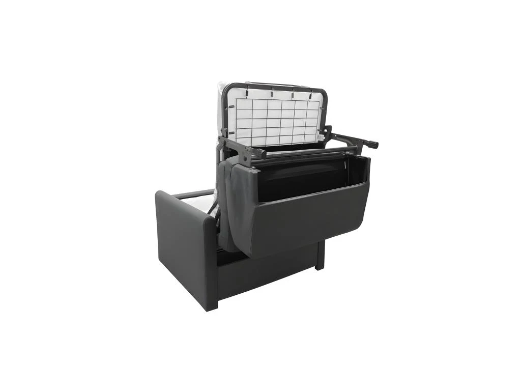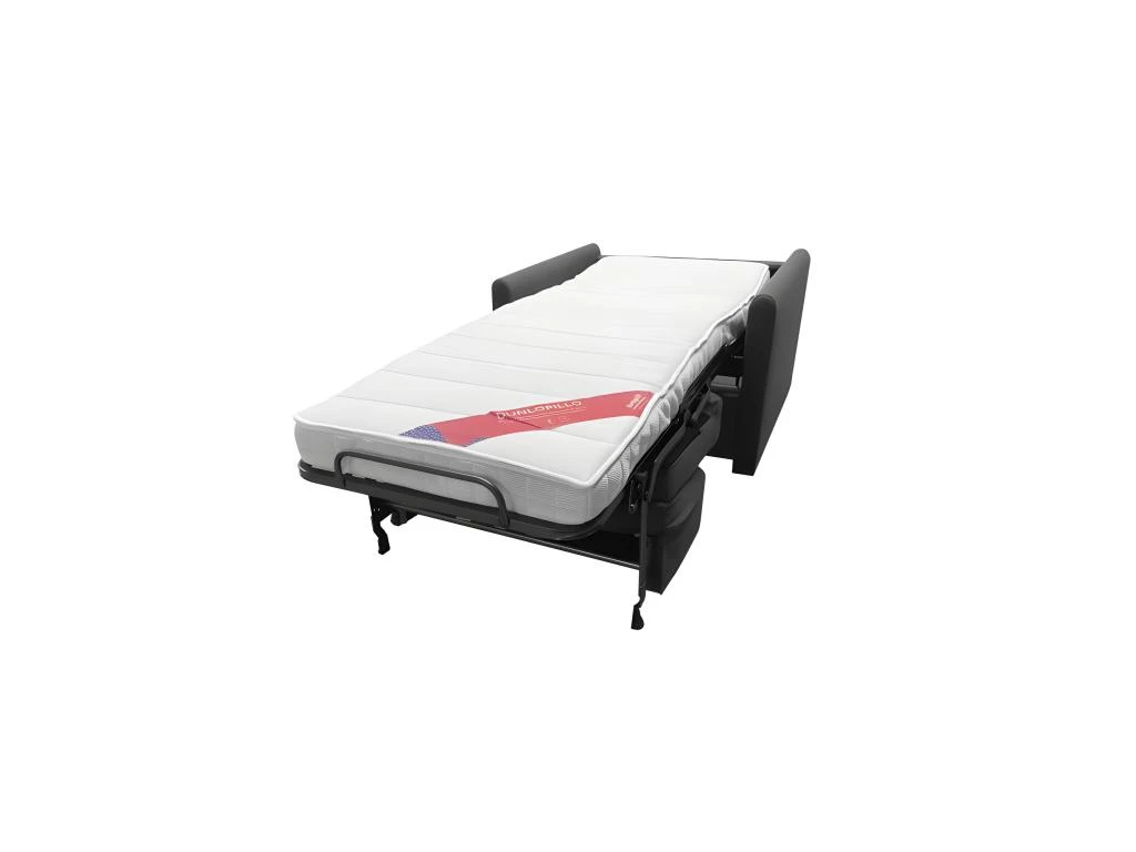 Prenez place dans le fauteuil convertible noir, 100% fabriqué en France, et détendez-vous ! Avec ses dimensions généreuses, ses coussins de dossier et d’assise moelleux, vous profiterez de son confort dans toutes les situations. En effet, grâce à sa fonction convertible révolutionnaire par basculement du dossier, technologie Rapido®Alpha, vous accédez rapidement à un lit 1 place (90cm) équipé d’un matelas DUNLOPILLO de 15 cm d’épaisseur pour vous garantir des nuits agréables et réparatrices.